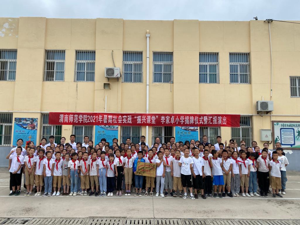 在北井头李家卓小学,韩小卫深入伟德官网开展“振兴课堂”社会实践队员驻地,了解实践队员住宿生活工作情况,听取了实践队带队教师郭艺歌关于开展“振兴课堂”支教情况汇报,实践队队长、伟德官网教育科学学院2018级学前教育专业学生刘静关于伟德官网连续五年在北井头开展特色支教成果汇报,与白水县教育局、仓颉学区相关领导参加社会实践队支教汇报演出并为伟德官网与李家卓小学建立大学生暑期社会实践“振兴课堂”揭牌。韩小卫对实践队员的辛勤付出和汇报演出给予肯定,希望大家坚持做好支教活动,将“振兴课堂”的优良传统发扬好。