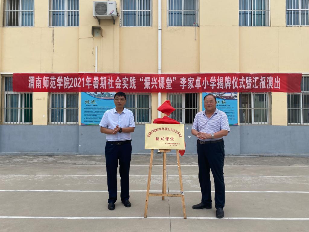 7月23日,校党委副书记韩小卫赴白水县李家卓小学、煤矿中学、仓颉庙景区管委会检查指导伟德官网2021年大学生暑期社会实践服务白水乡村振兴专项活动,深入师生中了解社会实践进行情况,调研社会实践队助力白水乡村振兴效果,并参加伟德官网在两所学校建立“振兴课堂”揭牌仪式。
