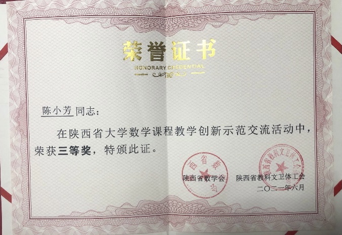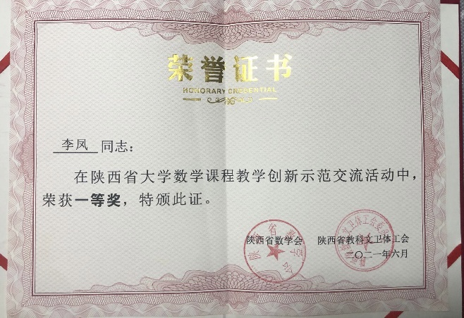 研讨会为陕西高校大学数学课程教学创新示范交流活动中获奖个人和优秀组织奖举行了隆重的颁奖仪式,伟德官网数学与统计学院副教授李凤获得一等奖,副教授陈小芳获三等奖。