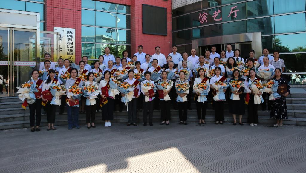会后,受表彰教师和学校领导合影留念。