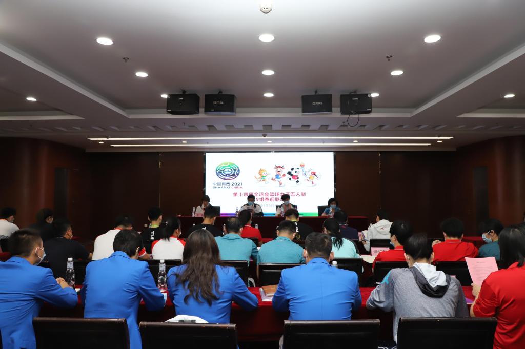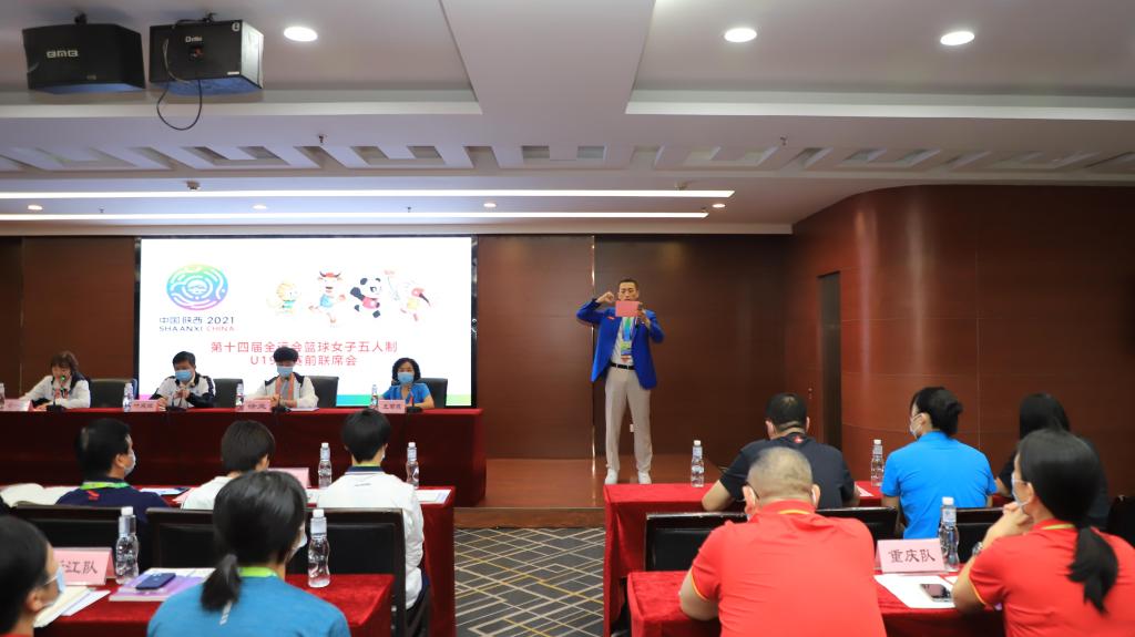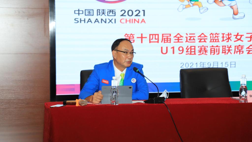 9月15日下午,第十四届全运会篮球女子五人制U19组赛前联席会在渭南市光明大酒店召开。