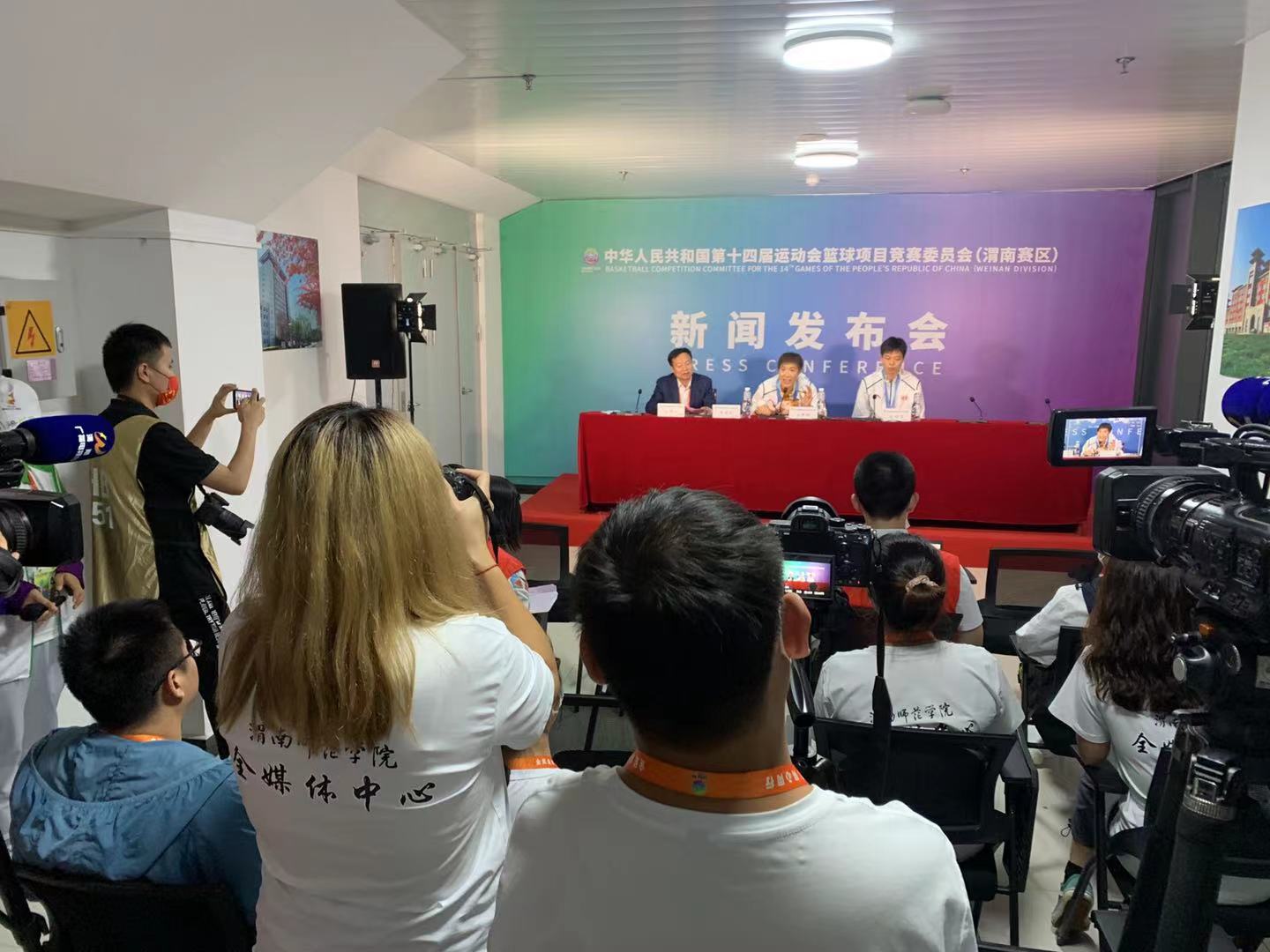 9月22日晚,第十四届全运会篮球女子五人制U19组比赛举行赛后新闻发布会。十四运会篮球项目(渭南赛区)竞委会副主任、伟德国际1949官网副校长王菊霞,十四运会篮球女子五人制U19组比赛冠亚军队主教练和运动员代表出席发布会。十四运会篮球项目(渭南赛区)竞委会媒体及电视转播协调处处长李宏武主持发布会。