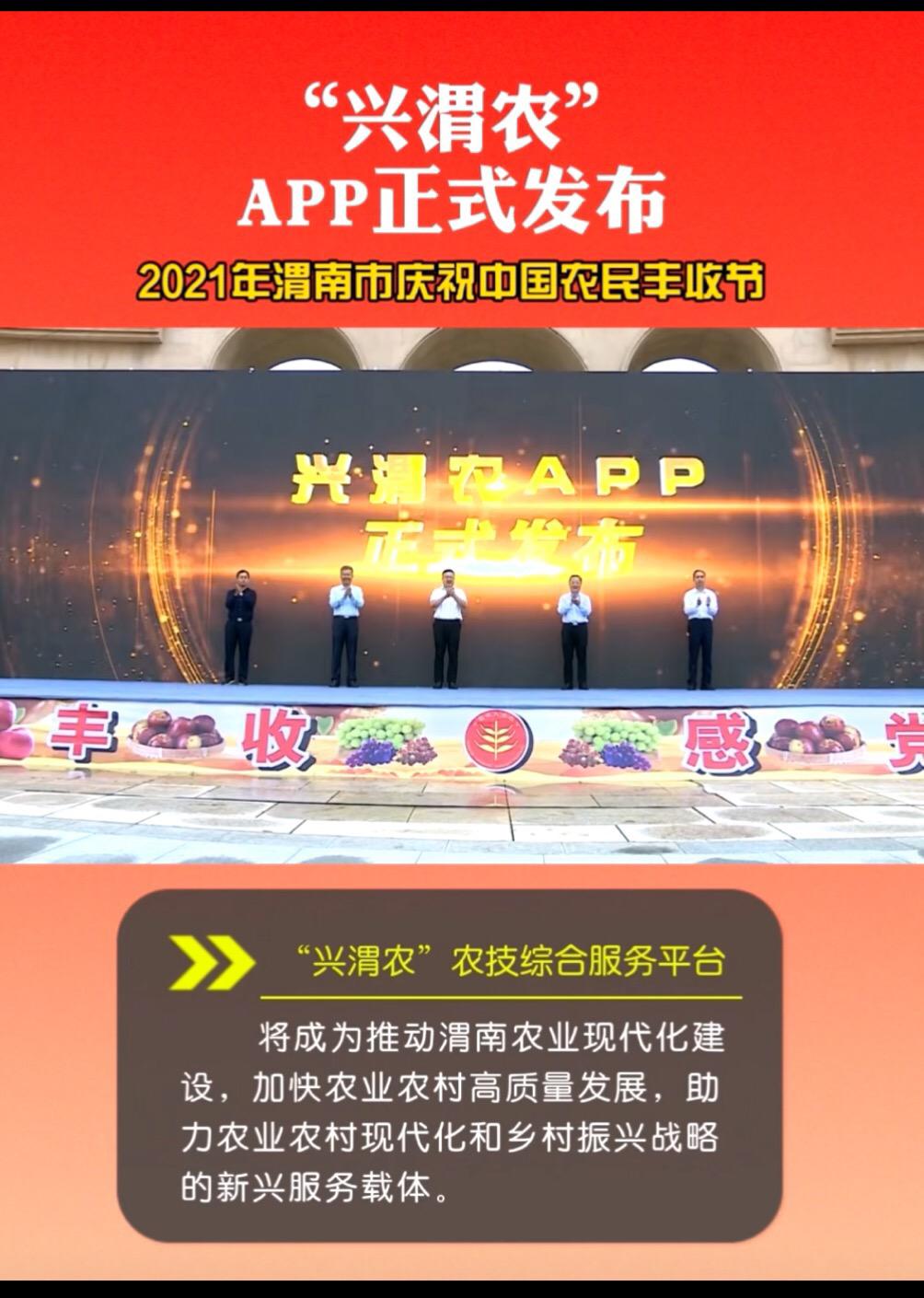 9月23日是第四个中国农民丰收节,渭南市举办了以“庆丰收、感党恩”为主题的庆祝活动,渭南市委书记王琳、市长陈晓勇、市人大常委会主任马赟、市政协主席陈俊哲、副市长杨武民共同启动按钮,发布伟德官网阴国富教授团队科研成果“智慧乡村--兴农宝”子产品“兴渭农”。