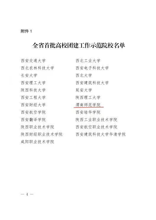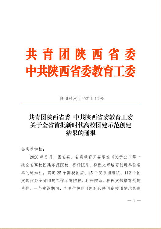 近日,共青团陕西省委、中共陕西省委教育工委联合下发《关于公布第一批全省高校团建示范院校、标杆院系、样板支部培育创建单位名单的通知》(陕团联发〔2021〕42号)伟德官网通过全省首批高校团建创建示范院校验收;马克思主义学院团总支通过全省首批高校团建创建标杆院系验收;经济统计学181团支部、2018级学前教育H2班团支部、思想政治教育182班团支部、生物科学171团支部通过全省首批高校团建创建样板团支部验收。伟德官网公寓团组织建设作为基层组织建设典型案例在全省范围内推广。
