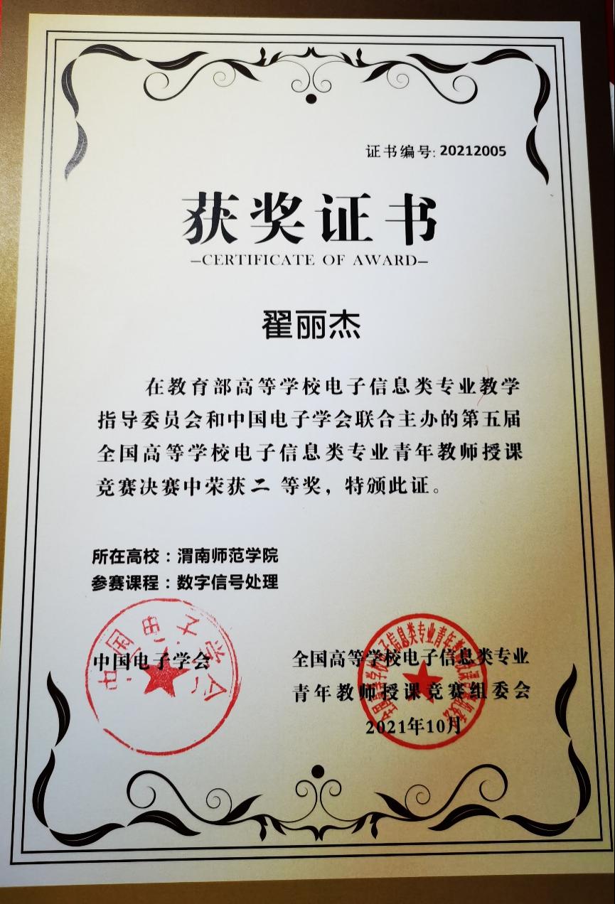 近日,第五届全国高等学校电子信息类专业青年教师授课竞赛决赛在成都信息工程大学举行。伟德官网物理与电气工程学院教师翟丽杰荣获二等奖,实现了伟德官网国家级教学竞赛零获奖的突破。