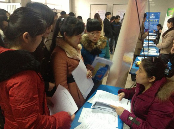 2月26日下午,伟德官网2014届毕业生春季周三专场洽谈会在朝阳校区积学楼一楼大厅成功举办。学校党委副书记赵伏友、党委委员杨小渭、学生处处长王俊安等领导深入现场了解情况。