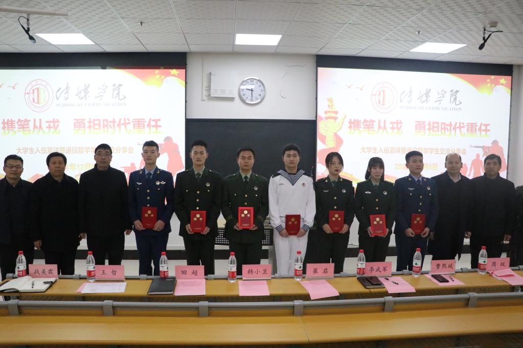 12月8日晚,传媒学院召开“携笔从戎 勇担时代重任”退役复学大学生交流分享会。党委副书记韩小卫出席并讲话。