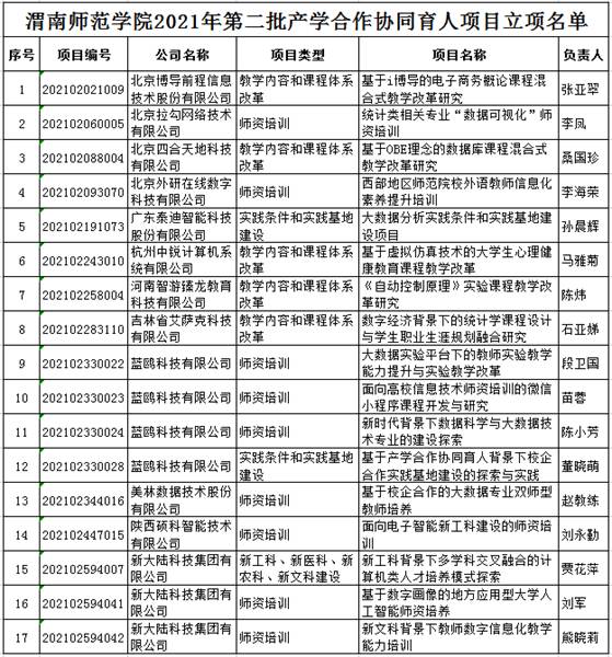 12月15日,教育部高等教育司发布了《教育部高等教育司关于公布2021年第二批产学合作协同育人项目立项名单的通知》(教高司函〔2021〕18号),伟德官网共17个项目获准立项,其中“四新”项目建设类1项、教学内容和课程体系改革类5项、师资培训类9项、实践条件和实践基地建设类2项。加上2021年第一批22项,2021年学校共计39个项目获批立项。