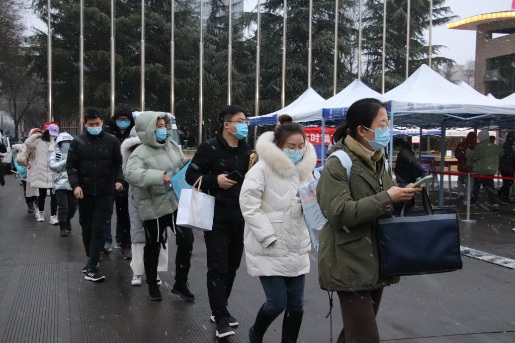 后勤保障组联系车辆、安排好住宿,帮助富平校区158名考生返回朝阳校区顺利参加考试。对所有考区设施设备进行检修,规范并做好消杀工作。考试期间,为社会考生和考务、监考、安保人员保障午餐供应。应对下雪路面湿滑的情况,在通往各考场路面上铺设防滑草垫,保证考生安全进入考场。