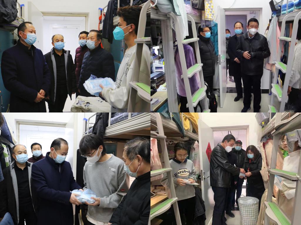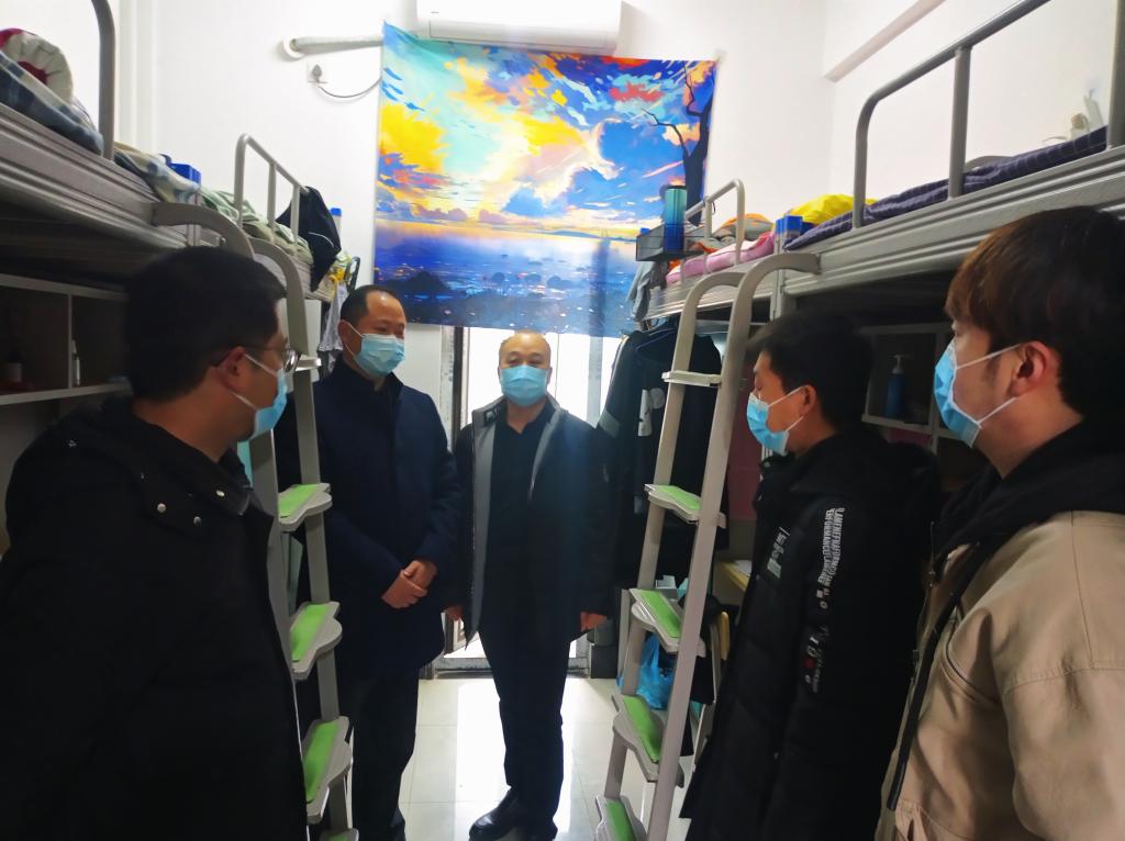 1月5日上午,党委副书记、纪委书记肖耀刚,党委副书记汪勇深入富平校区检查指导疫情防控工作,并在行政楼二楼会议室召开工作座谈会。富平校区疫情防控工作专班副组长、党委委员、副校长卢爱刚,富平校区疫情防控工作专班副组长、党委委员、组织部部长凌朝栋陪同检查并座谈。