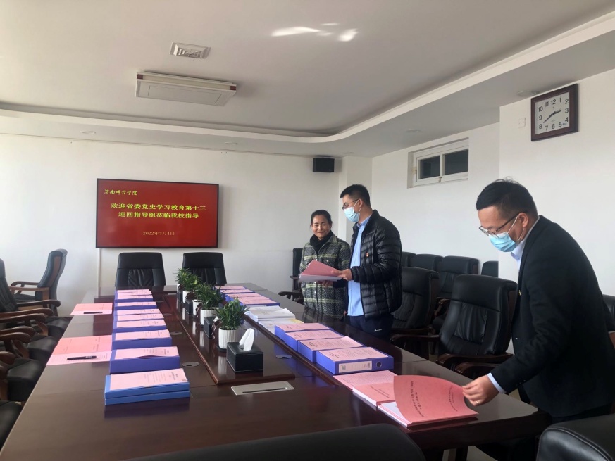 在朝阳校区,指导组一行通过听取汇报、查阅资料、调研访谈等方式全面了解伟德官网党史学习教育第三阶段开展情况。党委副书记韩小卫重点围绕深入学习党的十九届六中全会和省委十三届十次全会精神,系统推进“我为师生办实事”实践活动,持续深化“学史悟思想强根铸魂 奋进新时代追赶超越”主题活动,认真做好专题组织生活会问题整改及高质量开好专题民主生活会等方面对第三阶段以来伟德官网党史学习教育作了汇报。在会议室,指导组集中查阅了党史学习教育档案材料、“我为师生办实事”实践活动工作台账以及二级单位党史学习教育特色、亮点和成效。