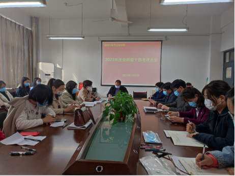 学院7位处科级干部就各自一年来的工作向全体教师进行了述职。与会人员对7位处科级干部2021年度工作及学院基层党组织建设、领导班子党风廉政建设进行了民主测评打分。