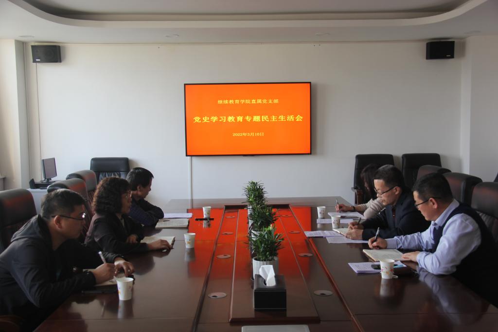 3月10日下午,继续教育学院直属党支部召开党史学习教育专题民主生活会。党委委员、副校长王菊霞,校党史学习教育第一督导组组长王俊安、成员高军强参加民主生活会并进行指导,学院领导班子参加会议。会议由直属党支部副书记周德锋主持。