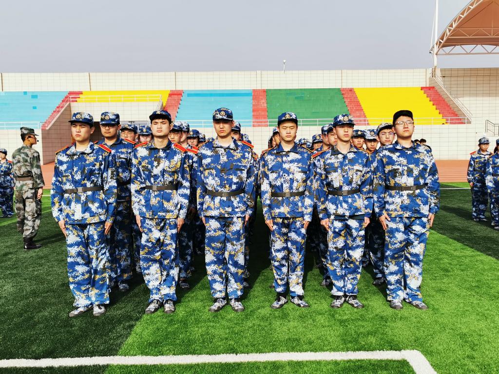 训练场上,十三营、十四营、十五营学生正在教官的指导下刻苦训练。15个连队方阵整齐、步伐统一、精神抖擞,凸显训练成效。