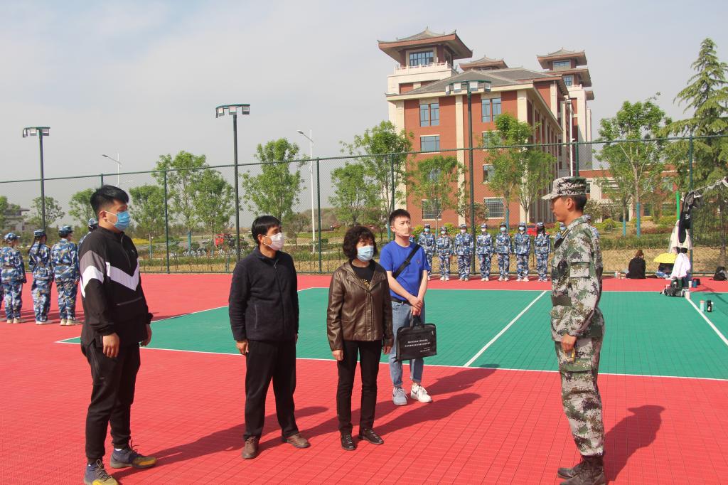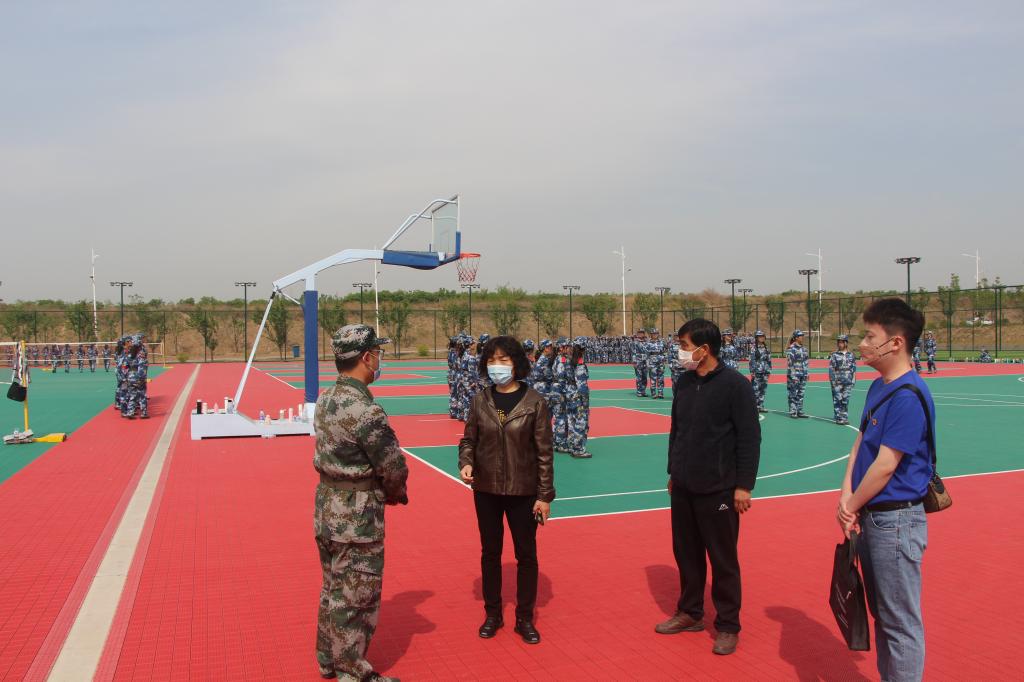 4月19日上午,党委委员、副校长、军训工作领导小组副组长王菊霞深入富平校区学生军训现场,检查指导2020级、2021级学生军训工作,亲切慰问了军训教官、连队指导员及参训学生。