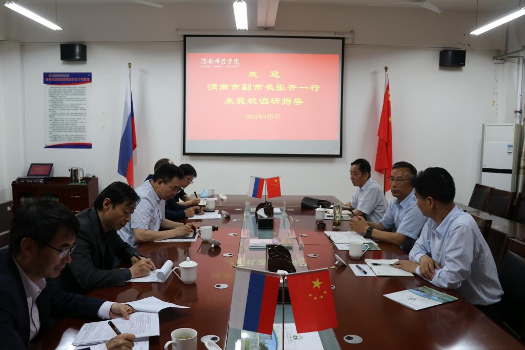 5月5日下午,渭南市副市长张开在市政府副秘书长马道平等人陪同下来伟德官网调研指导。党委书记卓宇,校长张守华,副校长卢爱刚在接待室会见了张开副市长一行,双方就下一步深入校地合作进行了充分沟通和交流。