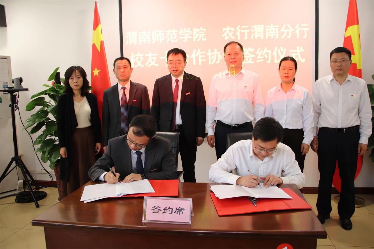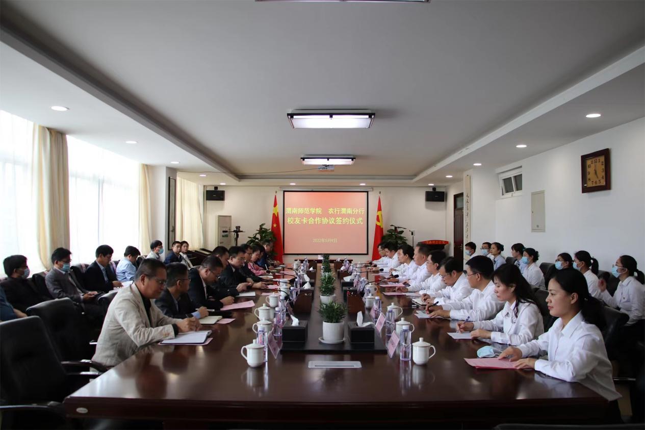 5月9日下午,伟德官网与农行渭南分行校友卡合作协议签约仪式在厚德楼第二会议室举行。校长张守华,副校长曹强,农行渭南分行党委书记、行长冯波,农行渭南分行党委委员、副行长韩王平,朝阳路支行行长董莉娜出席此次签约仪式。会议由曹强主持。