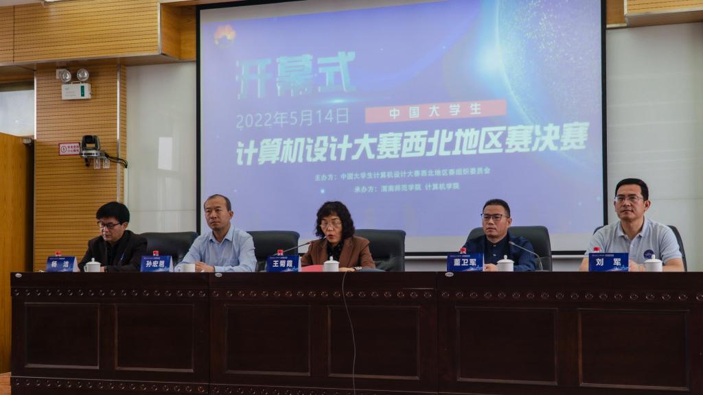 5月14日,伟德官网举办2022年中国大学生计算机设计大赛西北地区赛决赛。中国大学生计算机设计大赛西北地区赛组委会秘书长董卫军、伟德官网副校长王菊霞、教务处处长孙宏恩、计算机学院党总支书记杨洁、院长刘军及计算机学院教师和志愿者一百余人参加开幕式现场活动,西北地区赛组委会主任、国家教学名师耿国华和来自西北地区66所高校的100多位专家评委在线出席了开幕式。