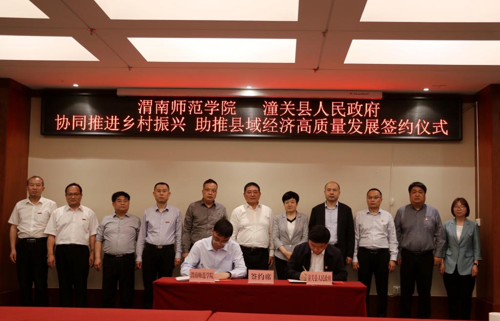 5月19日,党委书记卓宇,党委副书记韩小卫,党委委员、宣传部部长李明敏一行到潼关县调研座谈并签订校地合作协议。