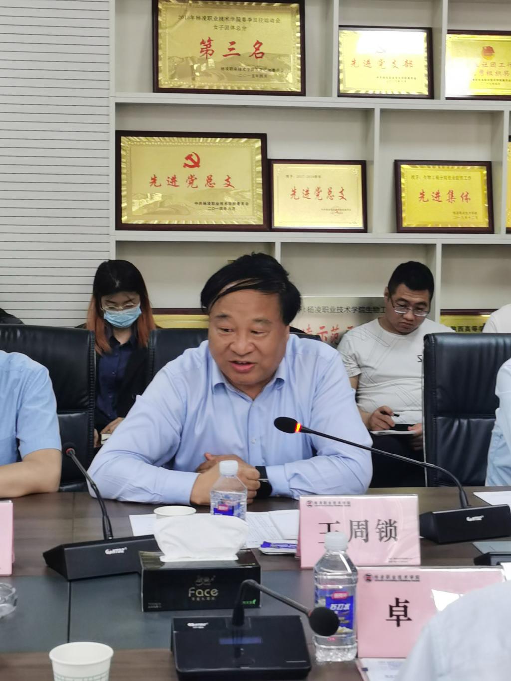 座谈会上,杨凌职业技术学院校长王周锁对卓宇一行的到来表示欢迎。他介绍了杨凌职业技术学院的办学历史、办学理念、“双高”建设、联合办学工作开展情况。