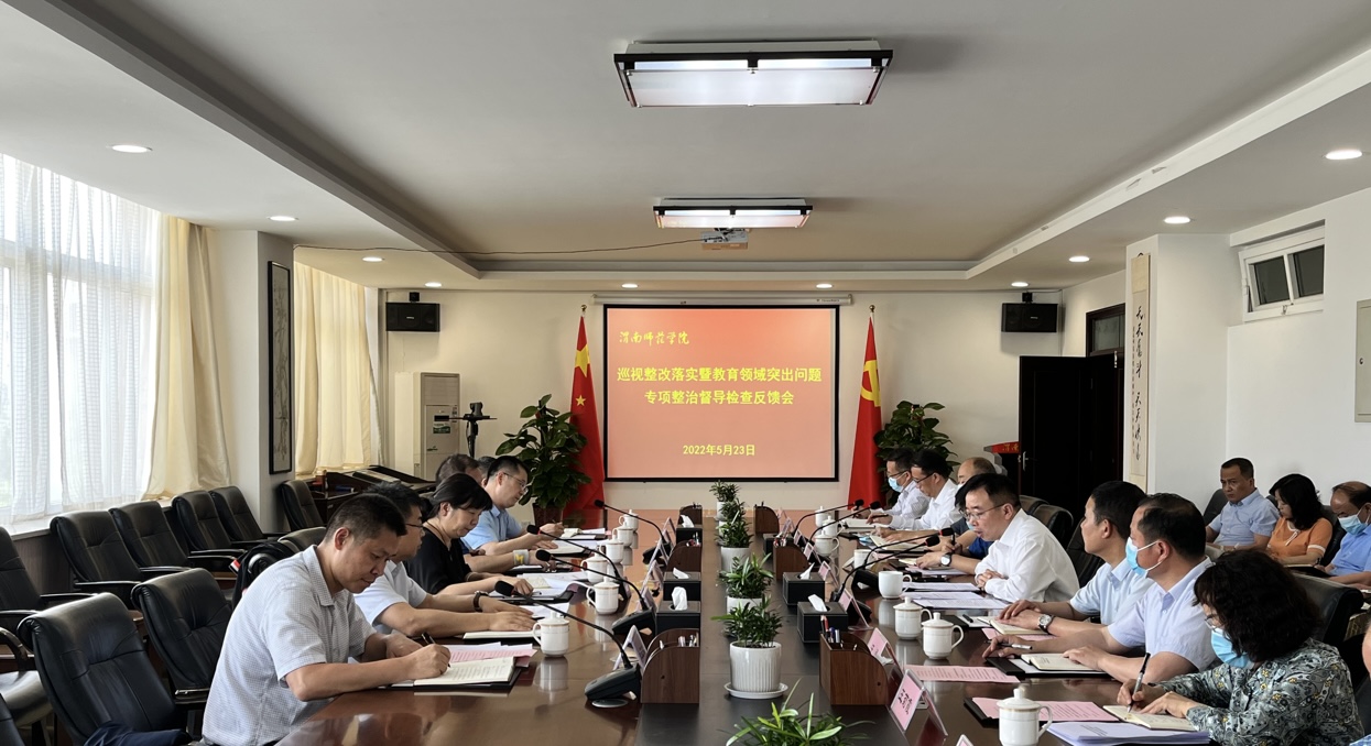 5月23日上午,陕西教育领域突出问题专项整治督导检查组组长赵军一行6人来伟德官网督导检查巡视整改落实暨教育领域突出问题专项整治工作,在厚德楼第二会议室听取了巡视整改落实暨教育领域突出问题专项整治阶段性整改情况工作汇报,检查了整改整治工作资料,访谈了相关人员,反馈了督导检查意见。学校巡视整改落实暨教育领域专项整治工作领导小组成员出席汇报会和反馈会。会议由党委副书记、校长、学校巡视整改落实暨教育领域突出问题专项整治工作领导小组组长张守华主持。