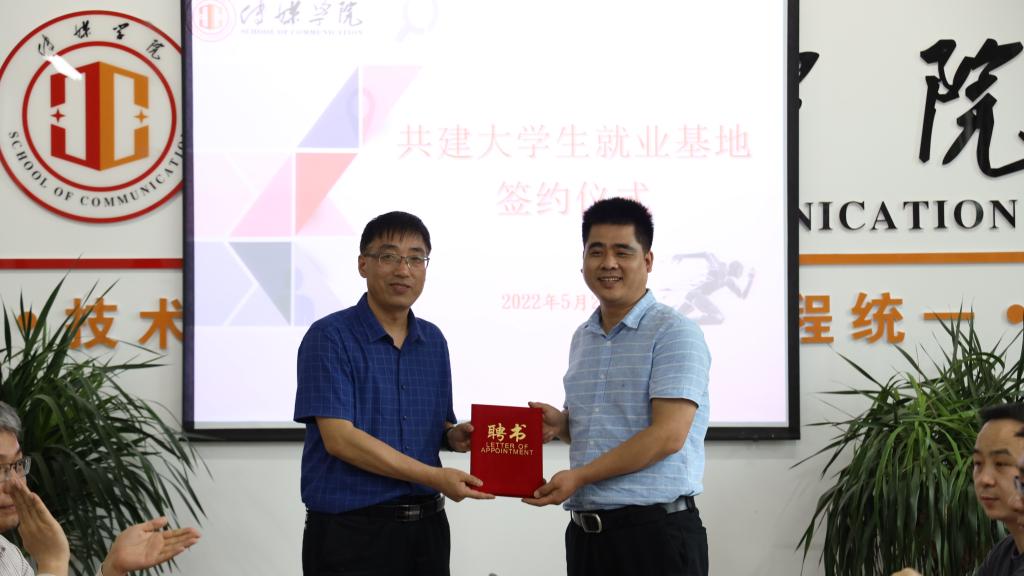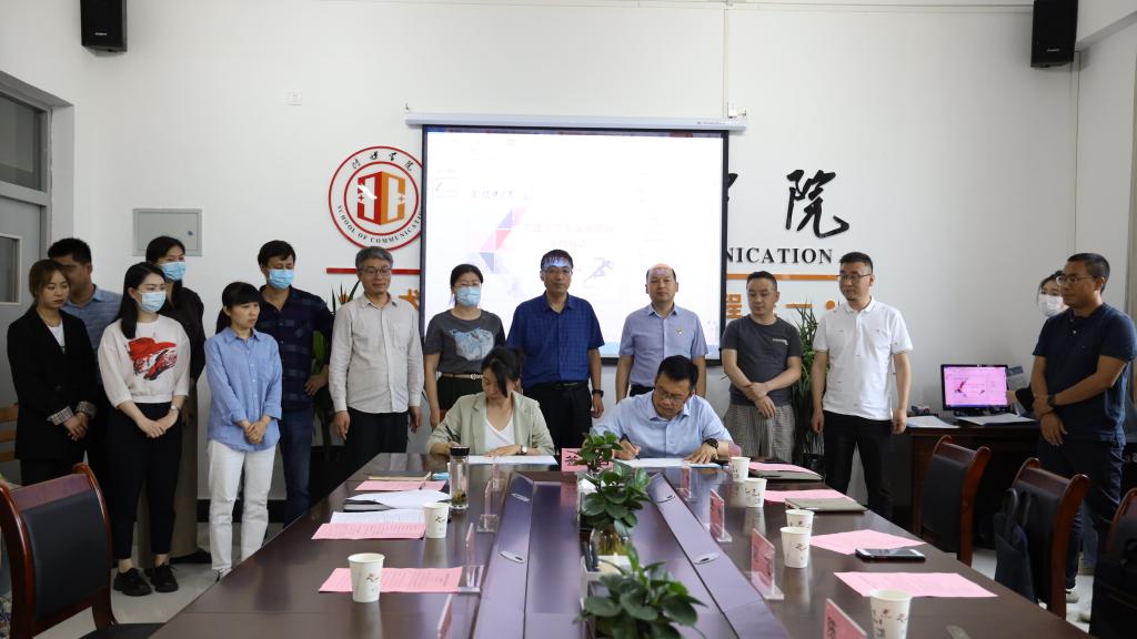 在双方代表的见证下,传媒学院院长曹熙斌和与会企业分别签订了实践教学和大学生就业基地协议。