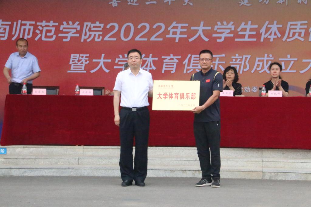 大会上,张守华为伟德国际1949官网大学生体育俱乐部授牌。
