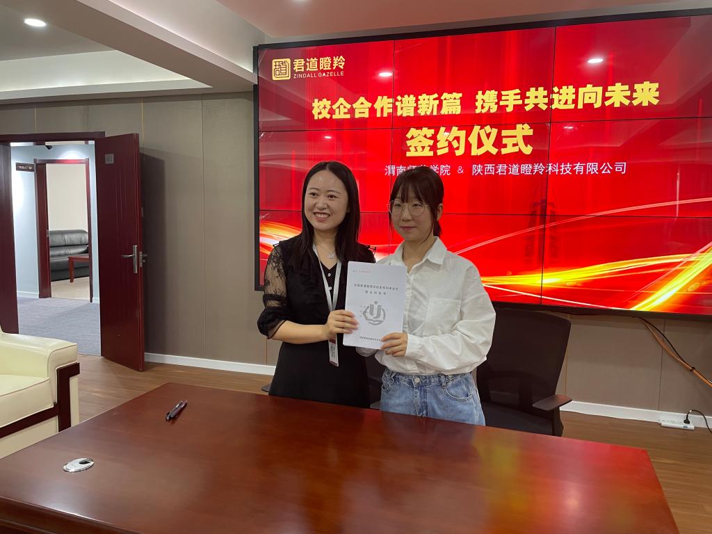 随后,汪勇与王刘华签订了《共建大学生就业基地协议》,并为陕西君道瞪羚科技有限公司授大学生就业基地牌。伟德官网经济与管理学院毕业生李莹现场与企业签约。