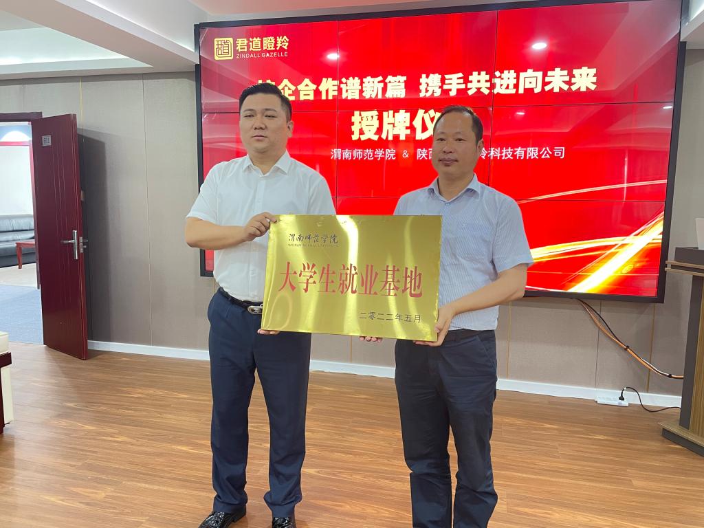 5月31日上午,党委副书记汪勇,物理与电气工程学院副院长白秀英等人前往陕西君道瞪羚科技有限公司调研交流,并签订合作基地协议。