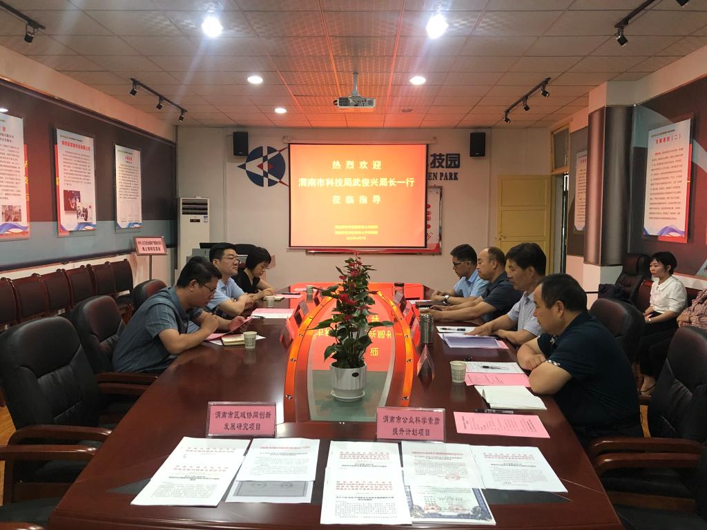 6月7日下午,渭南市科技局党组书记、局长武俊兴,渭南市科学技术局党政办主任、市资源统筹中心副主任杜晓玲,渭南市科学技术局资源配置科科长宁远骄一行到伟德官网大学科技园调研工作。副校长卢爱刚、大学科技园总经理王建平、党支部书记王争辉、伟德官网技术转移中心主任阴国富及区域协同创新发展研究项目5名课题组代表、博士教授专家服务团2名代表陪同座谈。