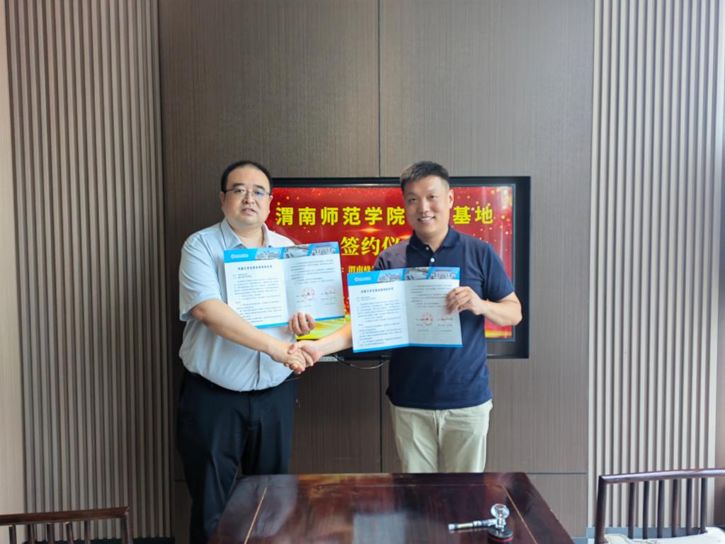 美术学院院长殷晓克与张涛签订了共建大学生就业基地协议书。