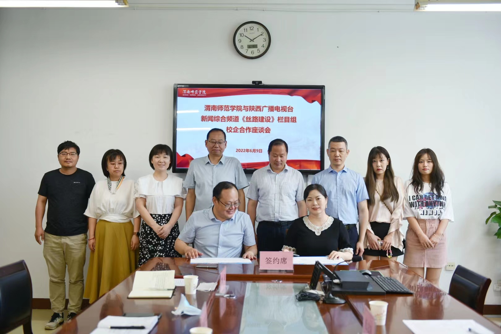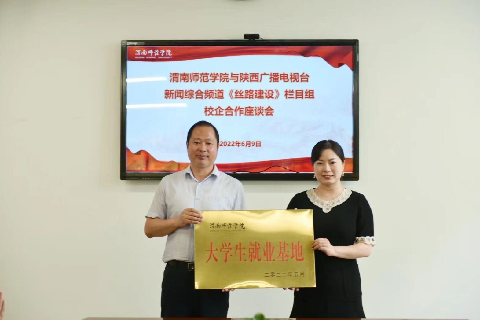 6月9日上午,伟德官网与陕西广播电视台新闻综合频道举行校企合作座谈会。党委副书记汪勇,陕西新闻综合频道《丝路建设》栏目主任魏金池一行4人,人文学院处科级干部、系主任、辅导员参加座谈,座谈会由人文学院党总支副书记、副院长张晶主持。