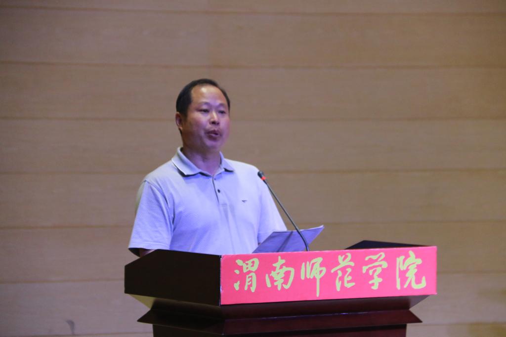 汪勇在开幕式上致辞,他希望,艺术节各项活动的组织,既要坚持提升艺术效果、又要注重精神引领;既要坚持继承传统,又要不断发展创新;既要坚持把握时代脉搏,又要贴近学生学习生活,要展现渭师青年朝气蓬勃、奋勉进取、百折不挠的精神风貌,用美的艺术作品为党的二十大献礼!