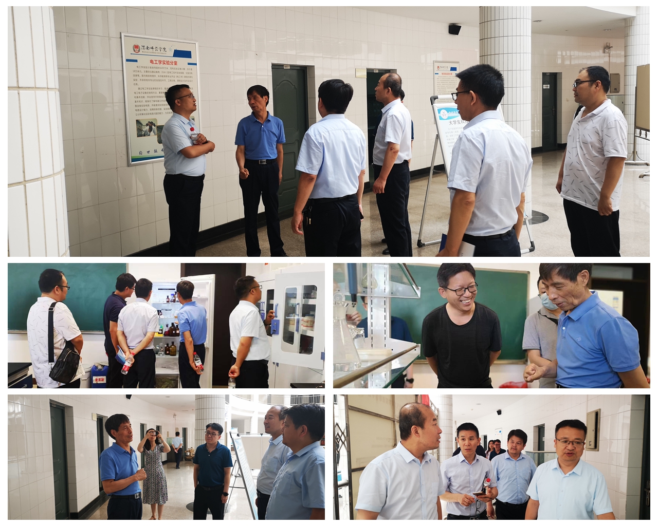 随后,专家组查阅了相关资料,深入物理与电气工程学院、环境与生命科学学院、化学与材料学院的主要实验室、学校师范生职业技能训练中心进行现场实地检查。