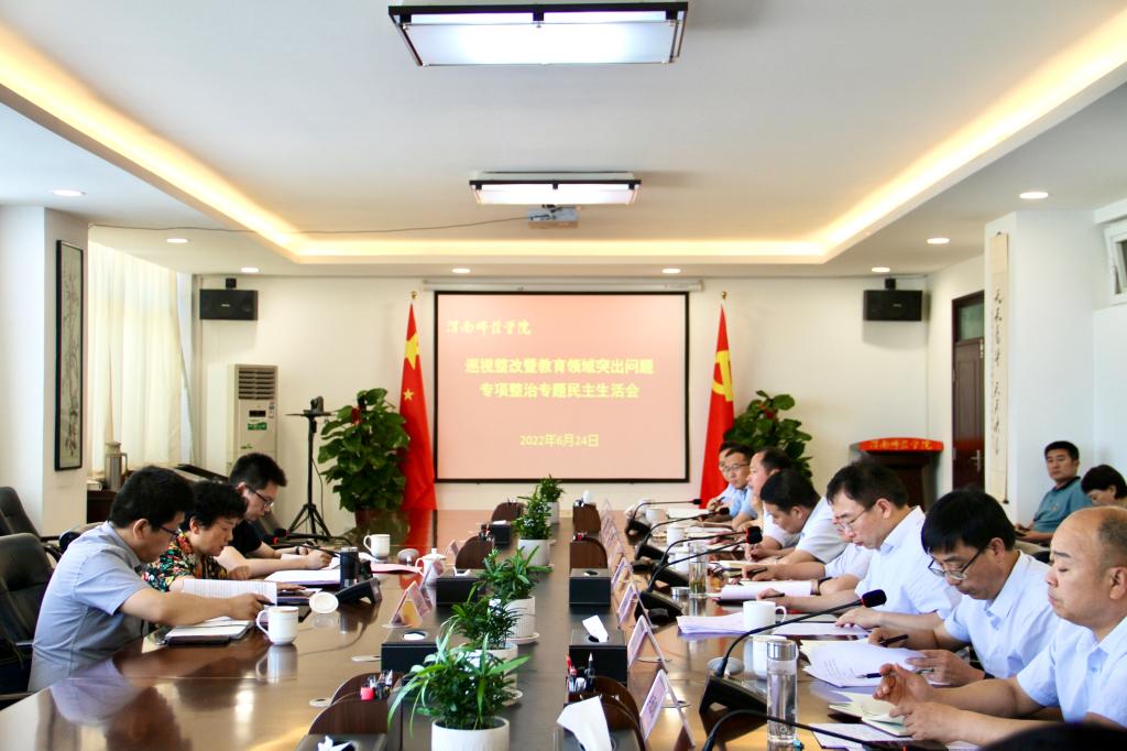 6月24日上午,伟德官网在朝阳校区召开校级领导班子巡视整改暨教育领域突出问题专项整治专题民主生活会。省教育领域突出问题专项整治工作领导小组专题民主生活会指导组组长、省委教育工委副书记陈乃霞,指导组成员、省委教育工委组织部干部刘光林、王永杰等同志到会指导。会议由校党委书记卓宇主持。全体校党委委员参加会议。