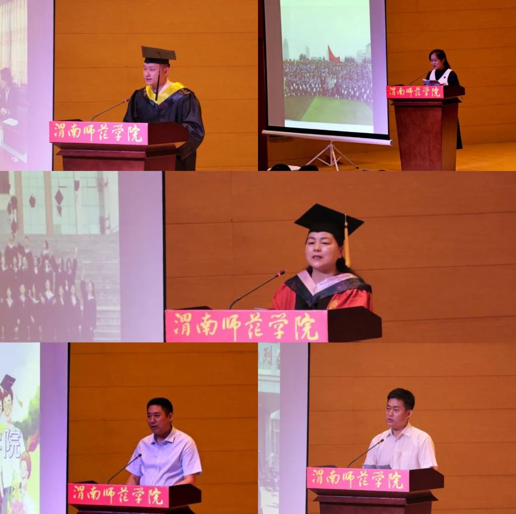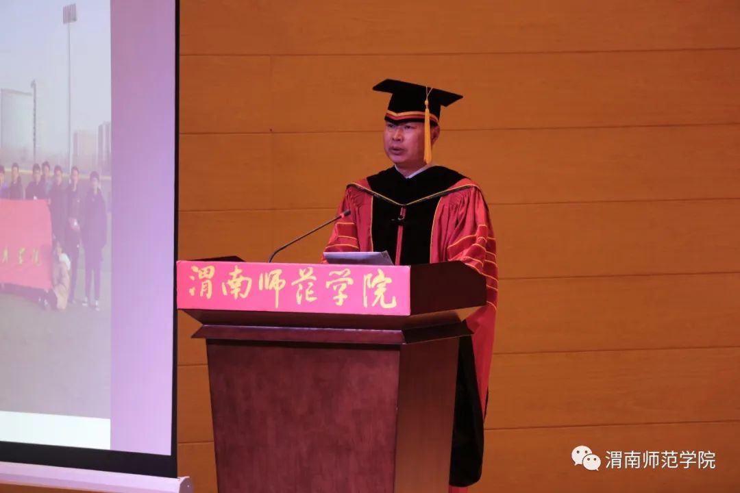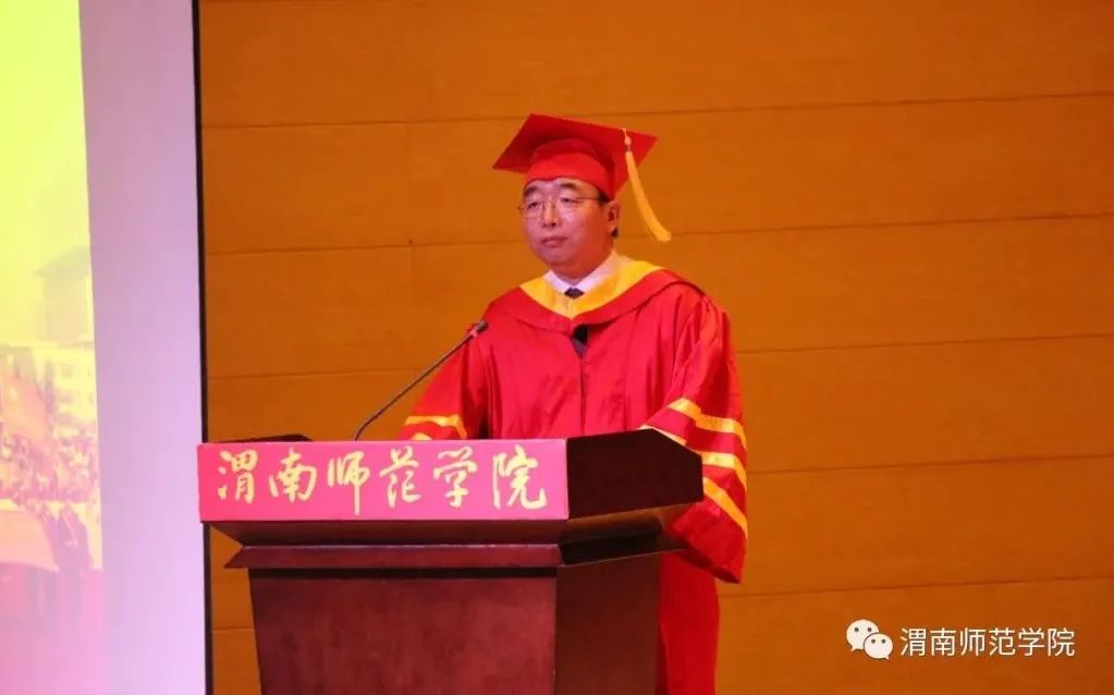 校长张守华代表学校向毕业生们致以热烈的祝贺和衷心的感谢,祝贺同学们顺利完成本科阶段学业,走向人生更广阔的天地,感谢同学们给伟德国际1949官网留下的蓬勃朝气与青春活力。他对广大毕业生提出三点殷切希望:一是站上讲台,在新的人生赛道上整装待发,随时准备迎接各种挑战;二是站稳讲台,在新的人生赛道上努力奔跑,争取跑出好成绩,站稳脚跟,才能走稳人生;三是站好讲台,在新的人生赛道上追求卓越,努力成就精彩。“四年渭师缘,一世渭师情。”毕业典礼结束之际,校长呼吁大家“常回家看看,渭师永远欢迎大家!”祝同学们前程似锦,梦想成真!