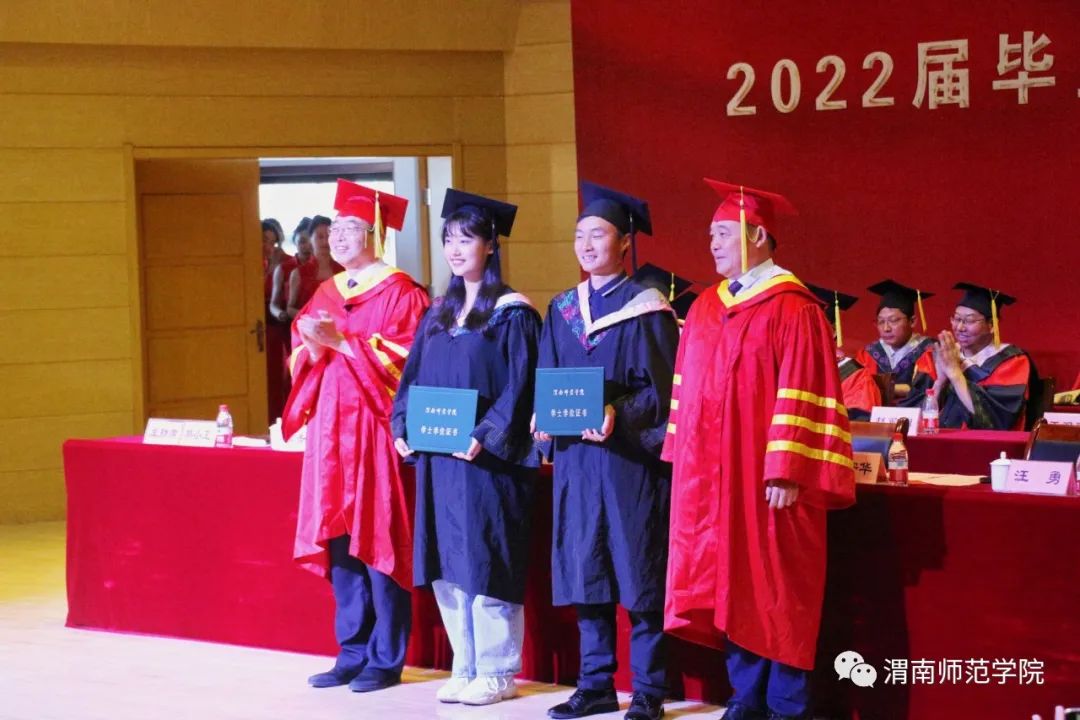 在热烈的气氛中,党委书记卓宇、校长张守华为毕业生代表颁发学位证书,拨穗正冠。一句叮咛,一句祝福,表达了学校领导的殷切期望;一个拥抱,一声珍重,寄予了同学们的感恩之情。