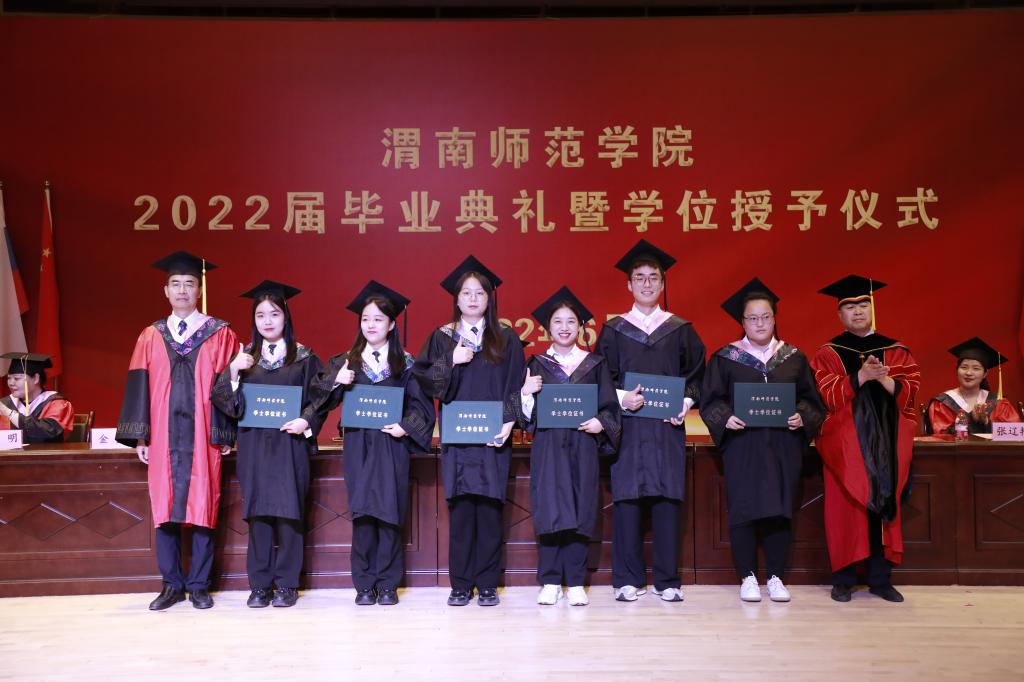 高红菊宣读毕业资格审查情况及学士学位授予决定。学生代表为感谢学院领导及老师的悉心培养和谆谆教导,深情献歌《启程》,2022届优秀毕业生代表为老师献花,全体毕业生现场齐声高喊“谢谢老师”。