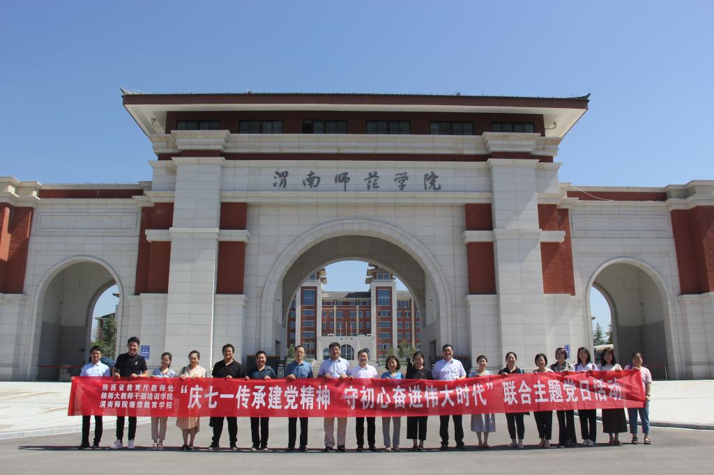 6月29日,继续教育学院直属党支部、省教育厅教师处党支部和陕师大教师干部培训学院党总支在富平县联合开展了“庆‘七一’传承建党精神,守初心奋进伟大时代”主题党日活动。副校长王菊霞,省教育厅教师处处长王彬武、副处长周淼,陕师大教师干部培训学院院长李铁绳,继续教育学院直属党支部书记周德锋、院长刘永勤及党员代表参加活动。