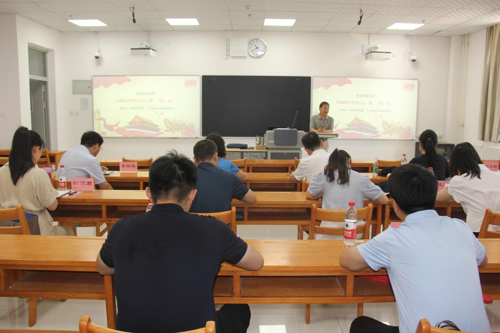 当天上午,伟德官网马克思主义学院副院长马忠智教授以《中国共产党为什么“能”》为题,在富平校区为党员们讲授了一堂精彩的专题党课。马忠智带领大家认真回顾中国共产党诞生、成长、发展、壮大各个阶段的历史足迹,帮助党员们积极探寻党带领中国人民实现“站起来”、“富起来”到“强起来”三步走的成功基因,围绕“为了谁”“依靠谁”“我是谁”深刻阐释党全心全意为人民服务的根本宗旨和以人民为中心的政治立场,多维度揭示了中国共产党之所以“能”的原因。通过学习,大家深刻认识到:只要坚定不移做到“听党话、跟党走”,中华民族伟大复兴的光荣梦想一定会实现。