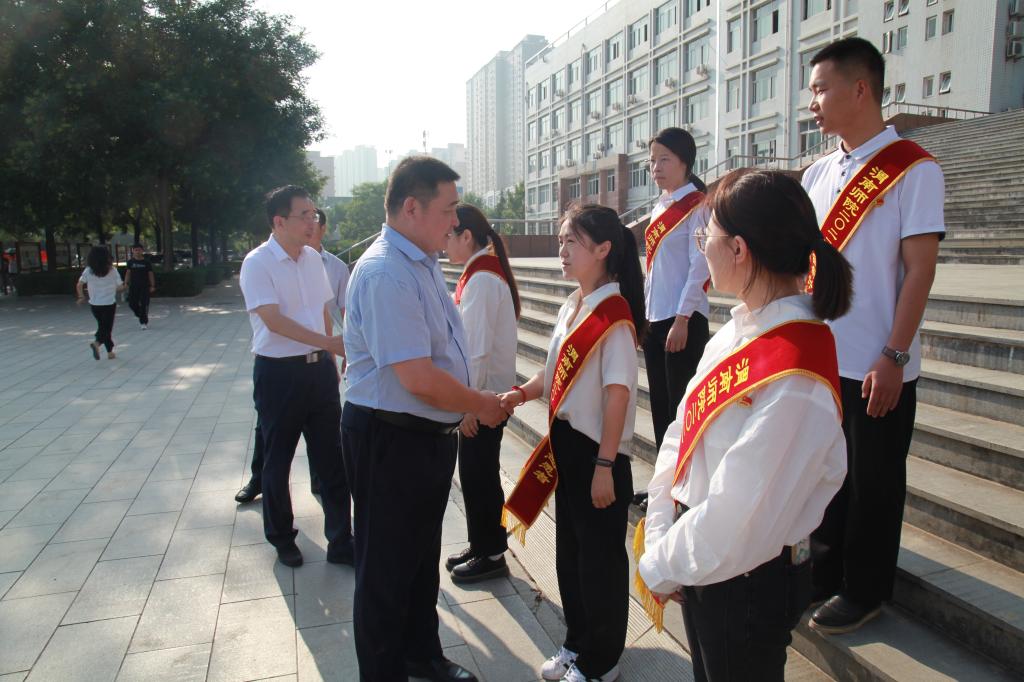 在学校厚德楼前,卓宇,张守华与志愿者们逐一握手,关心询问志愿者所学专业、服务地区、岗位状况和困难需求,为同学们通过层层选拔加入西部计划项目表示祝贺。卓宇表示,西部计划自2003年实施以来已历经19年,广大青年学生响应党的号召扎根基层,为西部的发展做出了重要的贡献,这种决心和行动值得我们尊重;他指出,自党的十八大以来国家各方面都取得了很大的发展,西部地区生活条件有了很大的改善,但仍然希望同学们做好面对困难的心理准备;他希望同学们能坚持锻炼身体,尽快适应服务地环境,把所学知识与基层需求相结合,在扎根基层的过程中实现自己的理想信念;他叮嘱同学们到岗后与参加西部计划的“前辈”取得联系,互相帮助,建立相关信息群与学校保持联系,常回学校看看,学校永远是大家的家。