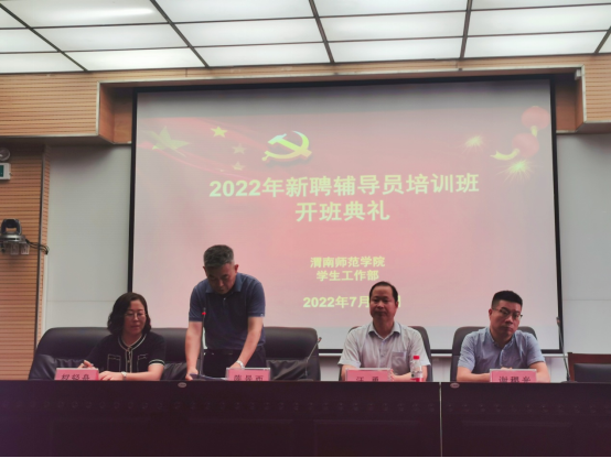 汪勇以“立德铸魂 知行合一 争做新时代优秀辅导员”为题作了开班讲话,他代表学校党委对新聘的辅导员表示诚挚欢迎,对学校辅导员队伍建设采取的有力举措和取得的优异成绩给予肯定。他指出,新入职辅导员上好岗前第一课,尽快转换身份,进入工作状态,更好地践行立德树人根本任务,努力成为“追逐光、靠近光、成为光、散发光”的渭师人。最后,他就大家如何成长为一名新时代优秀辅导员提了几点希望:一是要做一名有坚定信念的辅导员,做习近平新时代中国特色社会主义思想的坚定信仰者和忠实实践者;二是要做一名有博大胸怀的辅导员,注重教育引导青年学生知史爱党、知史爱国,胸怀人民、心系国家;三是要做一名有人格魅力的辅导员,以身作则,师德高尚,以人格魅力让学生“敬其师,信其道”;四是要做一名有仁爱之心的辅导员,关心关注学生学习成长之需,努力成为新时代探索思想政治教育工作规律的实践者和开拓者;五是要做一名有本领学识的辅导员,加强理论学习,强化业务能力,不断增强辅导员职业的认同感和归属感。