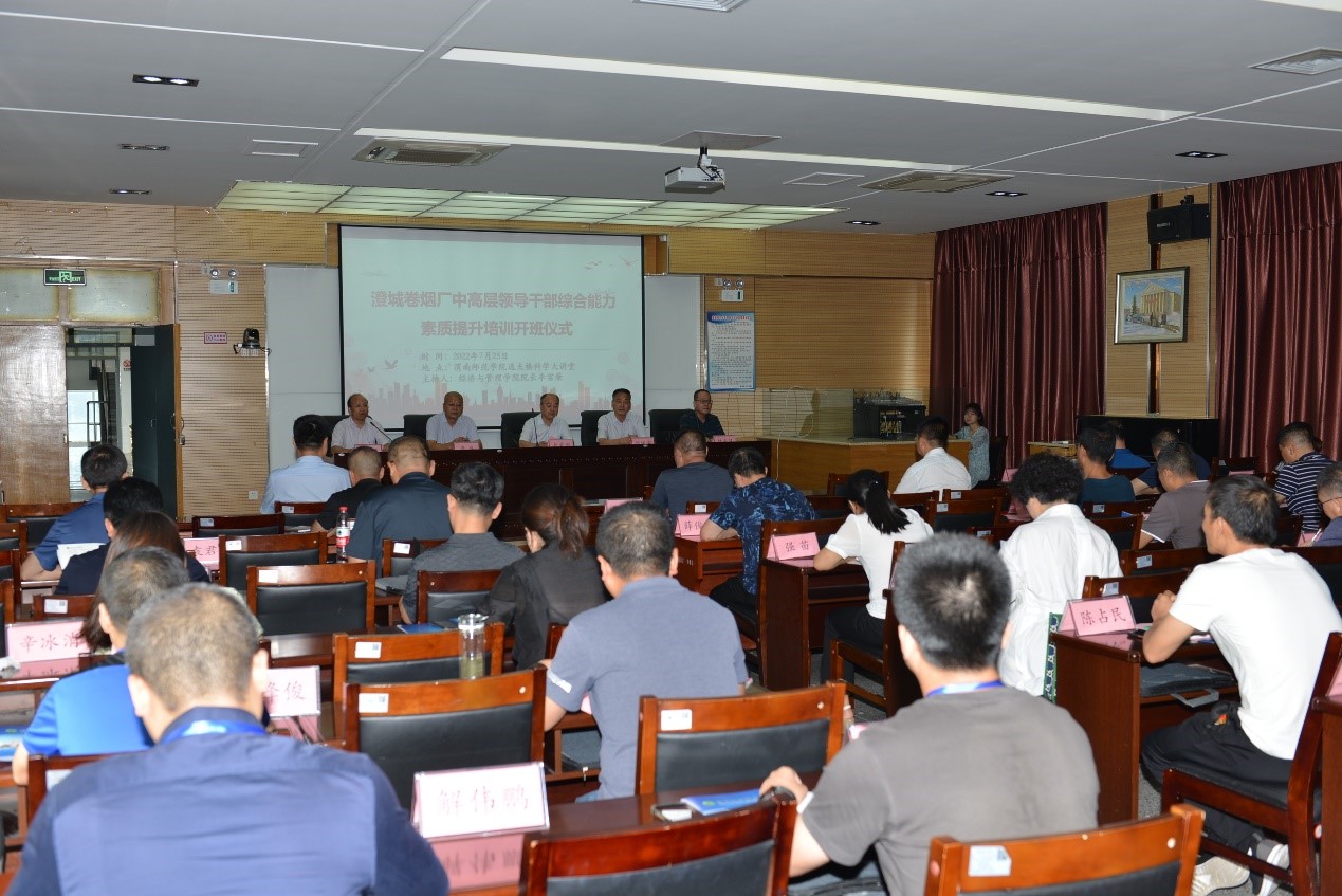 7月25日上午,中烟公司澄城卷烟厂中高层领导干部综合能力素质提升活动开班仪式在伟德官网逸夫楼科学大讲堂举行。副校长卢爱刚、经济与管理学院党总支书记魏光民,澄城卷烟厂厂长刘振宇、党委书记李磊及其他澄城卷烟厂中高层领导干部出席了此次开班仪式。仪式由经济与管理学院院长李富荣主持。