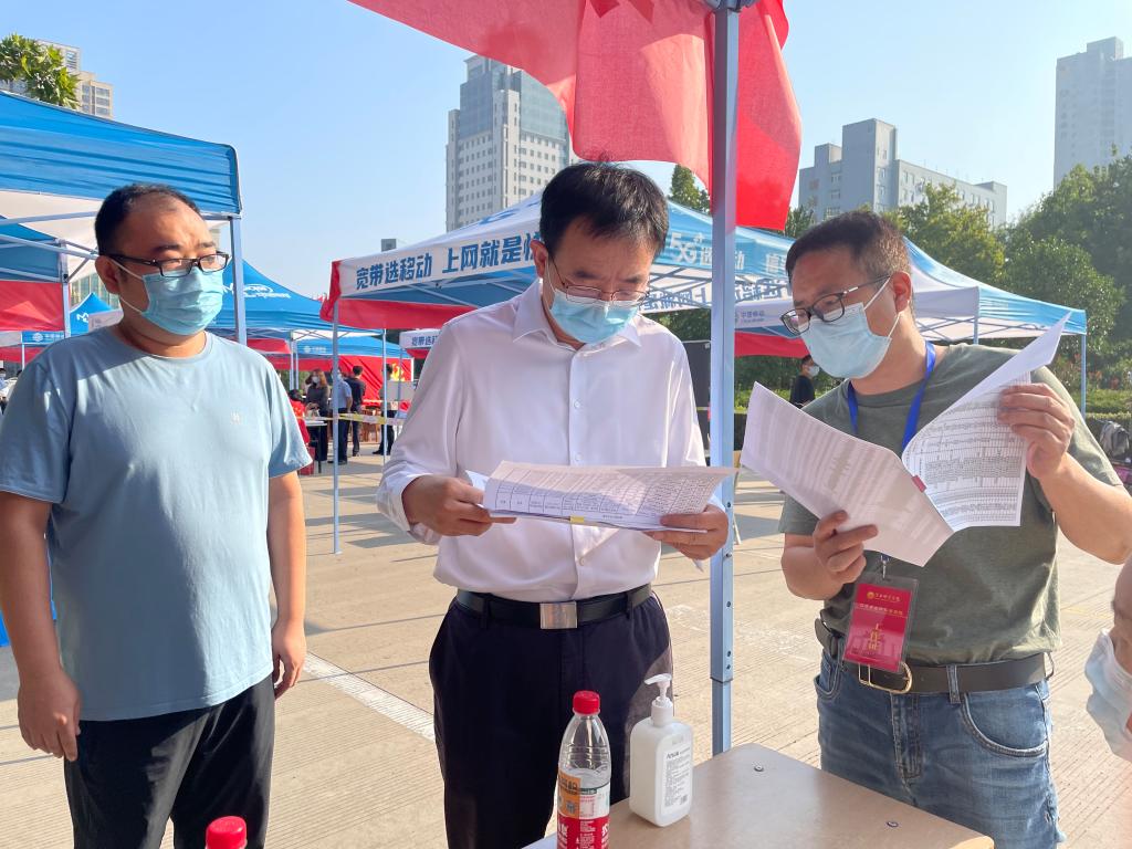 当日,学校领导多次察看报到现场实时督导疫情防控工作,亲切看望慰问返校学子,现场协调解决学子们的“急难愁盼”问题。