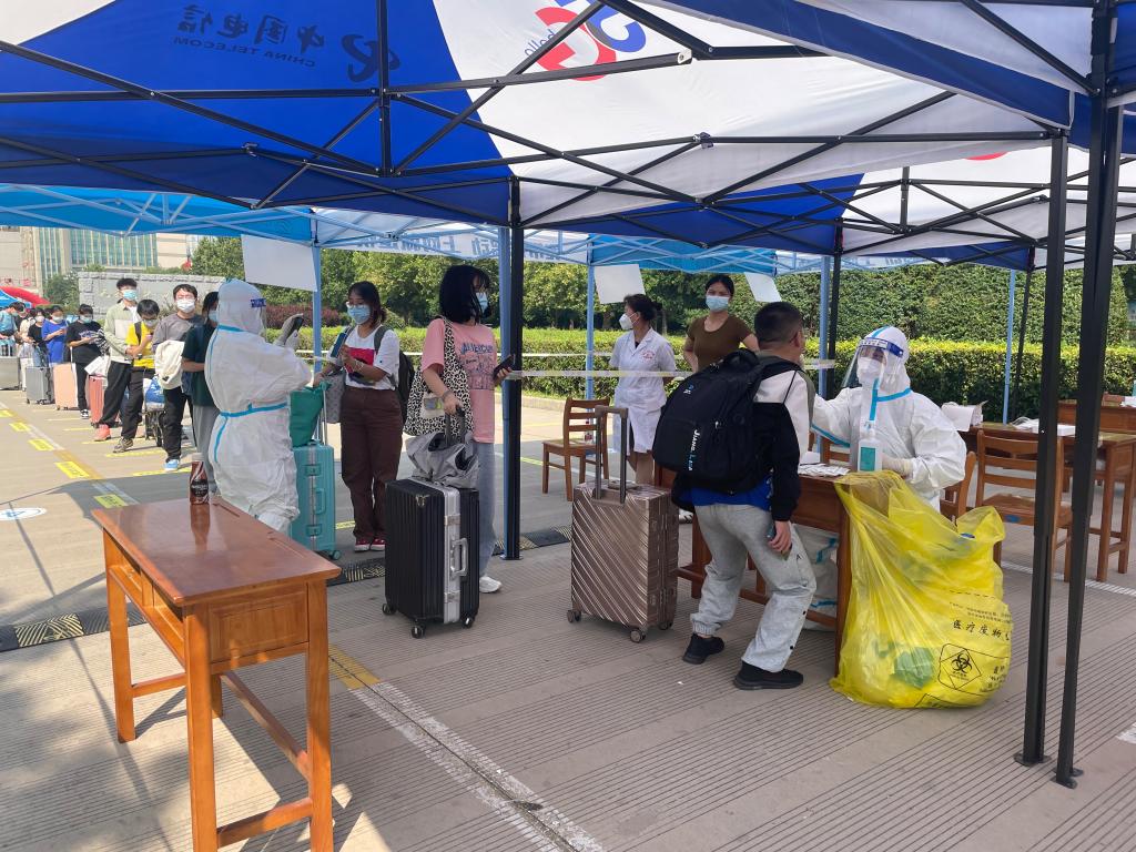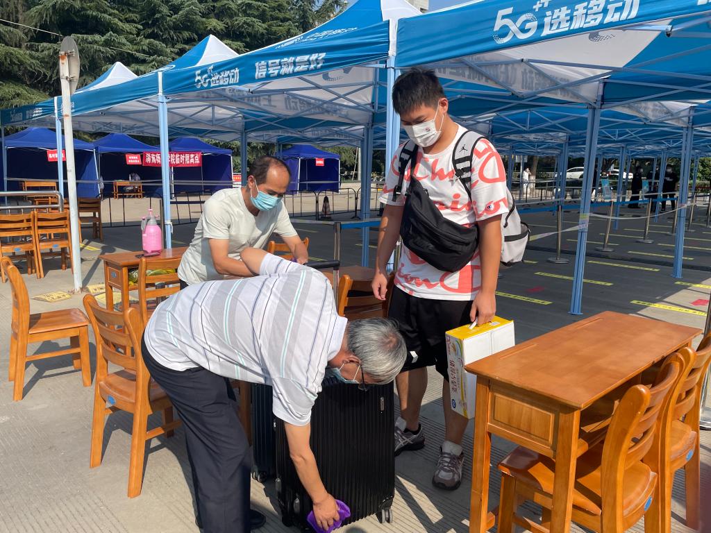 校医院还对入校学生进行核酸采样,学校安排多辆爱心接送车往返于学生公寓和报到现场,在志愿者们的暖心帮助下,学生们轻松快捷地把自己的“家当”搬运回宿舍,开启新学期校园生活,一声声熟悉的问候,一项项仔细的安全检查,扎实筑牢校园安全防线,为学生返校保驾护航。