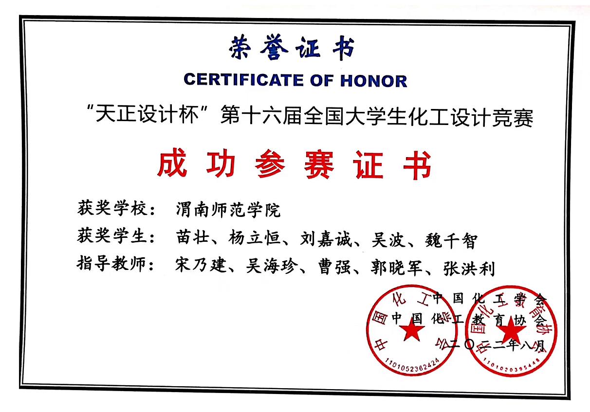 化工设计大赛由中国化工学会、中国化工教育协会主办,是国家A类大学生竞赛。目的为了多方面培养大学生的创新思维和工程技能,培养团队协作精神,增强大学生的工程设计与实践能力。本次竞赛设计任务:为某大型化工企业设计一座1,4-丁二醇生产分厂或为现有的 1,4-丁二醇生产分 厂设计技术改造方案,要求技术符合中国绿色低碳发展要求。整个竞赛历时近五个月完成。
