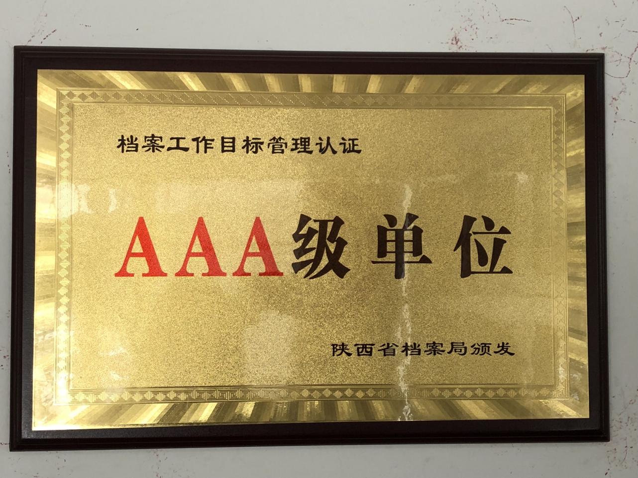 荣获陕西省档案局档案工作目标管理认证“AAA级单位”