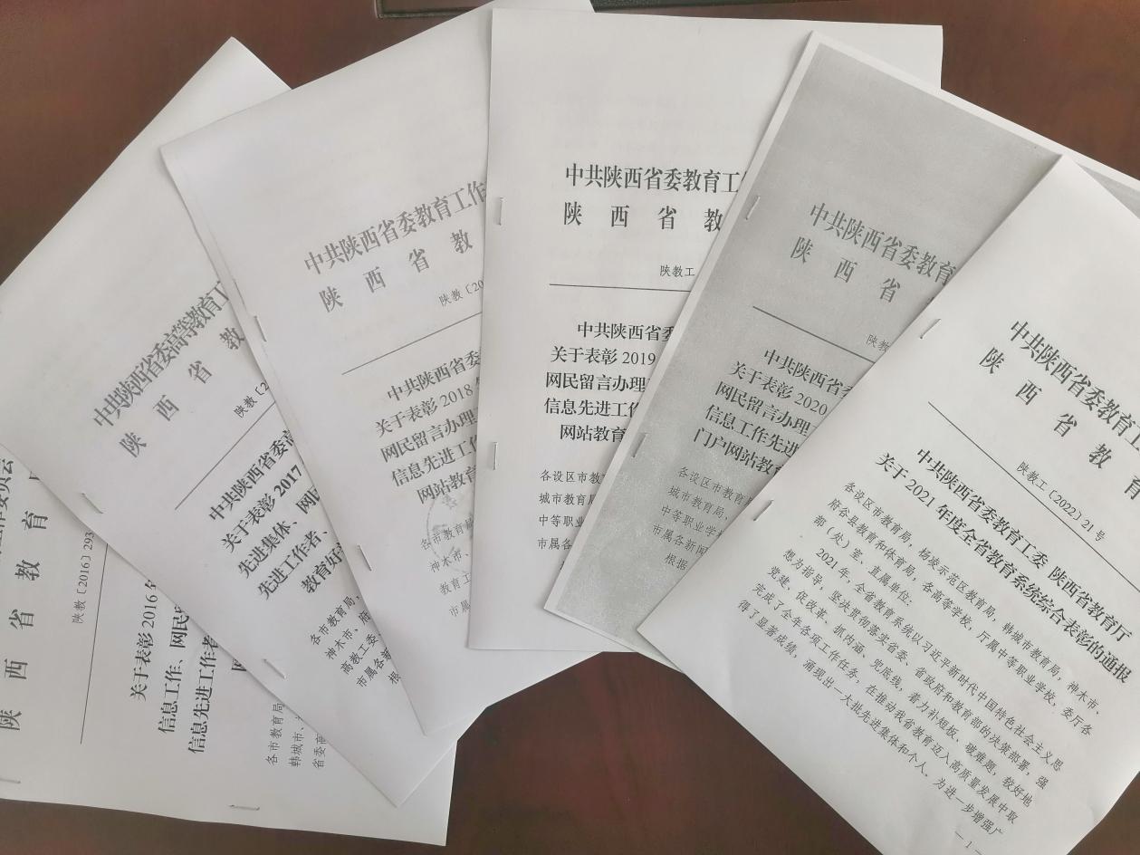 5.加大信息报送力度,抓好信息宣传工作。及时向教育厅报送信息,伟德官网信息工作连续四年荣获全省教育系统“信息工作先进集体”,多次荣获“网民留言办理工作先进集体”“信息工作先进工作者”“信息工作优秀信息员”“陕西省教育厅门户网站教育好新闻”等各项荣誉。