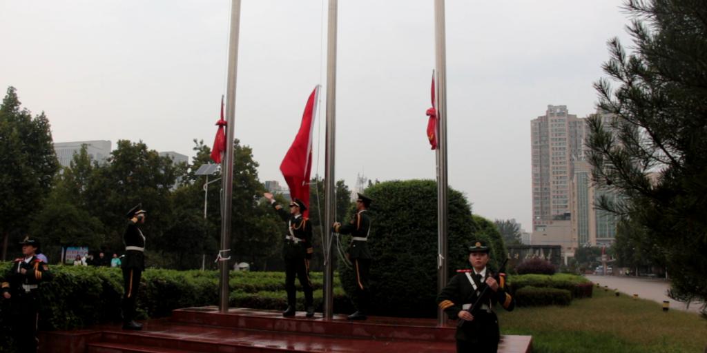 学校党委书记卓宇,副书记韩小卫、汪勇,副院长卢爱刚、王菊霞,党委委员凌朝栋、李明敏,党政办公室主任张勤恳参加升旗仪式。(通讯员 刘娟宁 审核人 肖飞)