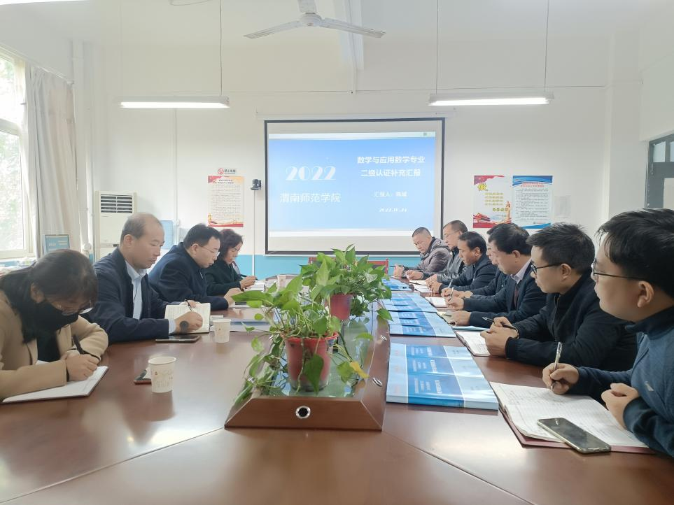 10月12日上午,校长张守华,副校长王菊霞检查指导数学与统计学院师范认证专家进校准备工作,教务处处长孙宏恩,教学质量监控与评估处副处长孙红梅陪同。数学与统计学院党总支书记武江波,院长陈斌,副院长赵教练、戴磊,专业负责人刘炳全参加。